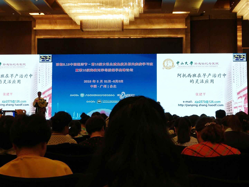 海南中和藥業(yè)股份有限公司作為婦產(chǎn)科領(lǐng)域的新興企業(yè),參加本次大會(huì),設(shè)置專門展臺(tái),宣講早產(chǎn)領(lǐng)域的經(jīng)典用藥—和雙 醋酸阿托西班注射液。不僅如此,大會(huì)主席---中山大學(xué)孫逸仙紀(jì)念醫(yī)院張建平教授也在會(huì)議中系統(tǒng)介紹了早產(chǎn)中阿托西班的用藥體驗(yàn)。同時(shí),中山大學(xué)附屬第一醫(yī)院王子蓮教授也在早產(chǎn)專題會(huì)場詳細(xì)介紹了阿托西班在雙胎早產(chǎn)使用中的經(jīng)驗(yàn)分享。與會(huì)專家紛紛參與討論,分享臨床體驗(yàn),為國內(nèi)早產(chǎn)患者臨床防治帶來更舒適、更安全的選擇。
