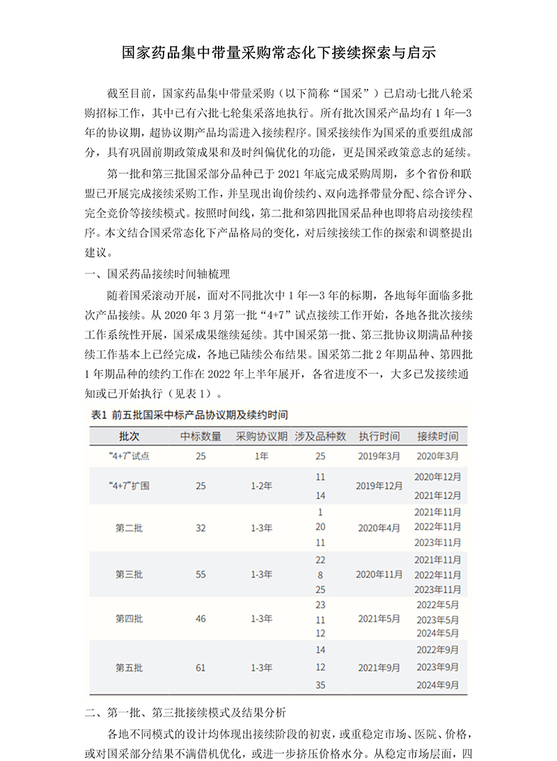 國(guó)家藥品集中帶量采購(gòu)常態(tài)化下接續(xù)探索與啟示