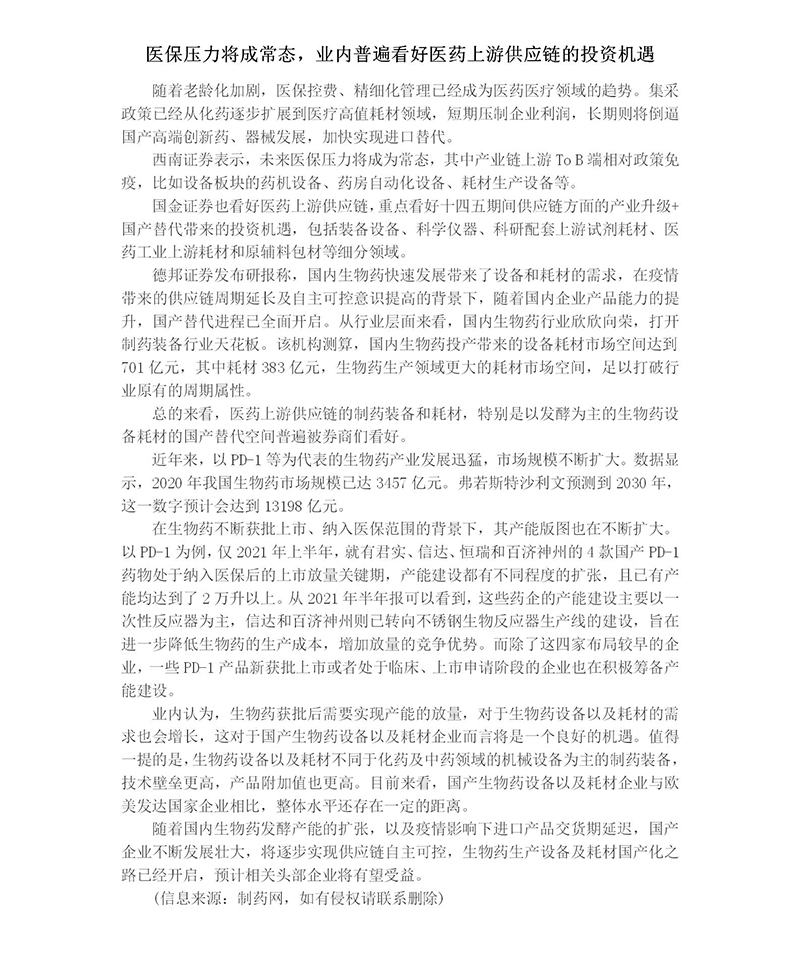 醫(yī)保壓力將成常態(tài),業(yè)內(nèi)普遍看好醫(yī)藥上游供應(yīng)鏈的投資機遇