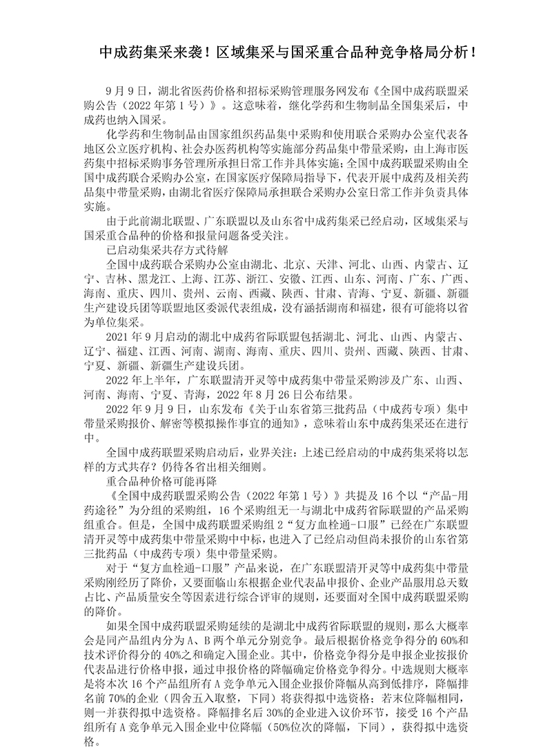 中成藥集采來襲!區(qū)域集采與國采重合品種競爭格局分析